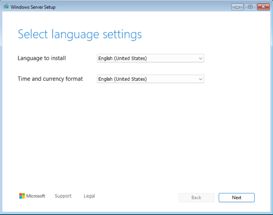I am leaving the language on English (United States) because I am planning to install Active Directory on it. I prefer to have my AD installed in English.
