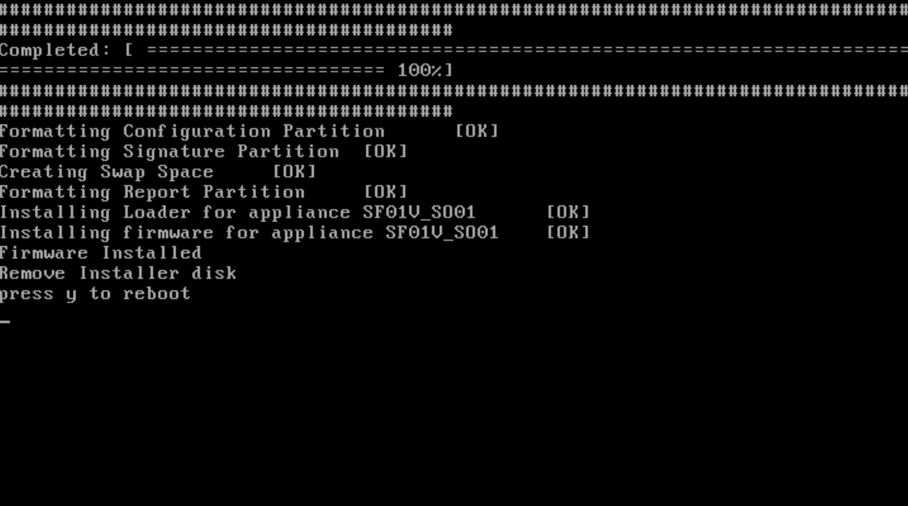Remove the ISO from the dvd drive and type “y” to reboot.