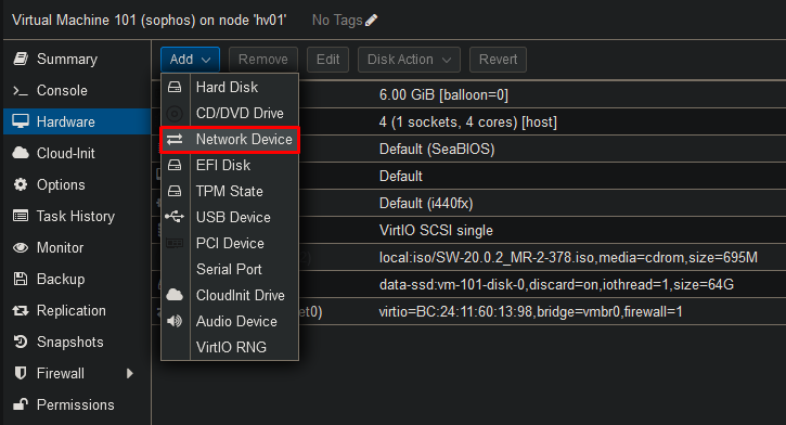 You will need 1 network adapter per interface / vlan. You will not be able to perform VLAN tagging inside of the VM. As a default you will need 2 network adapters to be able to install Sophos. The first network adapter will be interface LAN and the second network adapter will be interface WAN.