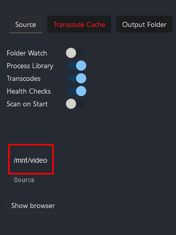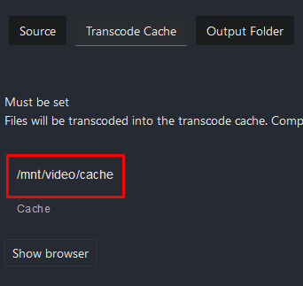 Select “Transcoding Cache” and enter the cache directory.