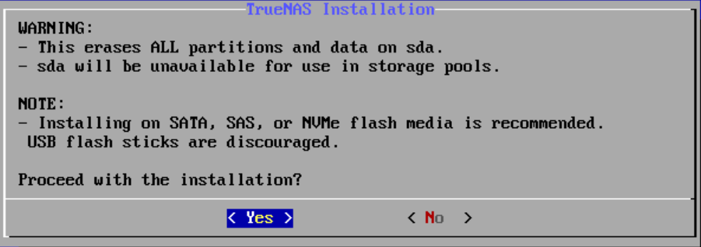 Select the default option “Start TrueNAS SCALE Installation”
