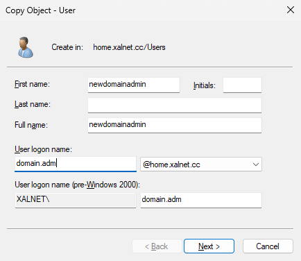Fill in the domain admin user info. It is advised to only use this user on your domain controller and nowhere else.