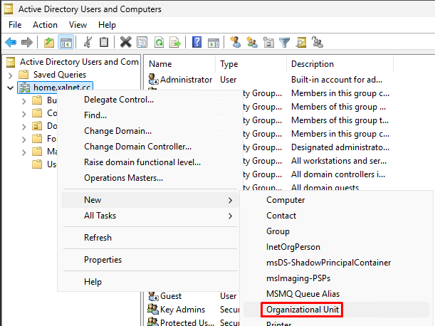 Now right click on your root folder and create more Organizational Units as needed.